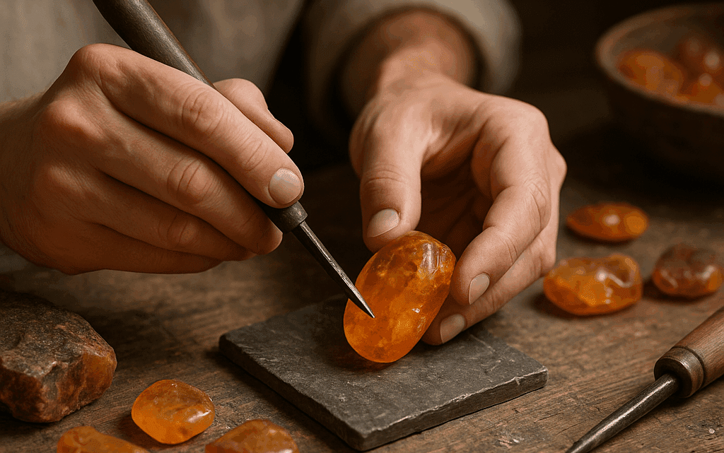 Archeolodzy odkryli w Polsce liczne przedmioty wykonane z bursztynu – paciorki, amulety, a także elementy stroju. Już w X wieku istniały na Pomorzu prymitywne warsztaty, w których rzemieślnicy obrabiali kamień, wyrabiając z niego biżuterię oraz ozdoby o charakterze sakralnym.