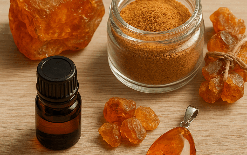 Dzięki właściwościom antybakteryjnym i przeciwzapalnym bursztyn znalazł miejsce w medycynie ludowej oraz w przemyśle kosmetycznym. Jego minerały i kwasy organiczne działają korzystnie na skórę, a w formie ekstraktów są wykorzystywane w kremach i maściach.
